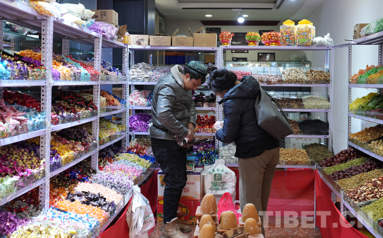 近日來(lái),拉薩年貨市場(chǎng)持續(xù)升溫,各大商超琳瑯滿目的商品堆滿了貨架,置辦年貨的市民明顯增多,逛市場(chǎng)、買年貨,到處充滿著濃濃的藏歷新年歡樂氣息。