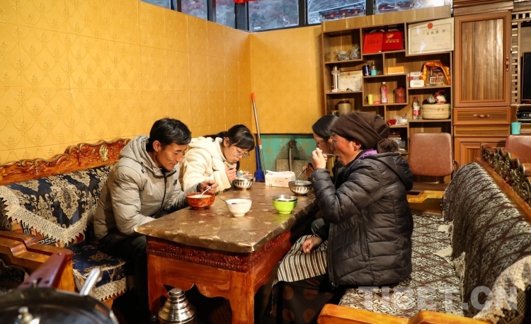 圖為扎西一家人正在吃“古突” 攝影:呂靜