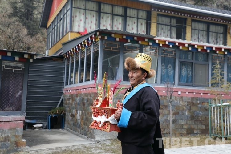 在玉麥鄉(xiāng)紐林塘村,村支部書(shū)記洛桑扎西也穿著盛裝,他與村民一起抱著切瑪去鄰居家里串門(mén),相互敬獻(xiàn)哈達(dá)、互敬切瑪。玉麥鄉(xiāng)家家戶(hù)戶(hù)歡聲笑語(yǔ),共度喜慶祥和的藏歷新年?。ㄖ袊?guó)西藏網(wǎng) 記者/呂靜 昂翁洛布 蘇洋 旦曲 趙振宇 陳浩力)