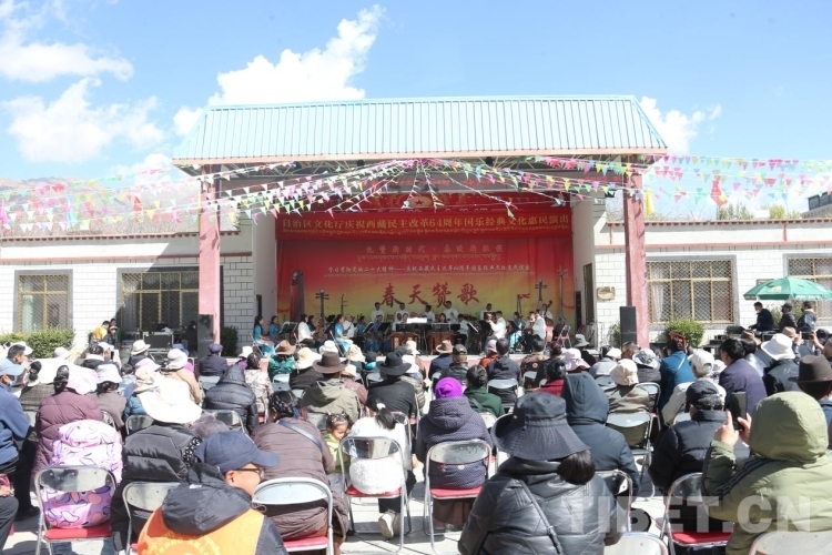 中國西藏網訊 近日,由西藏自治區(qū)文化廳主辦,西藏自治區(qū)歌舞團、藏劇團承辦的慶祝西藏民主改革64周年——國樂經典文化惠民演出《春天贊歌》在拉薩拉開序幕,并將于近期在拉薩、日喀則等地演出近20場。