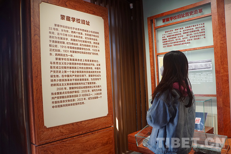 舊址西院,“蒙藏學(xué)校舊址專題展”主要展示舊址歷史沿革和革命活動,蒙藏學(xué)校學(xué)生參加五四運(yùn)動;李大釗、鄧中夏、趙世炎等對蒙藏學(xué)校青年的馬克思主義啟蒙和革命引導(dǎo);烏蘭夫、多松年 等 蒙藏學(xué)校進(jìn)步青年參加校內(nèi)外革命活動……突出展現(xiàn)中國共產(chǎn)黨成立后在這里組織開展革命斗爭的歷史。“中華一脈 同心筑夢”主題展分為“共同締造新中國”“團(tuán)結(jié)建設(shè)新社會”“攜手奮斗繁榮路”“同心奮進(jìn)新時代”4個部分。展出照片420多幅,實(shí)物、文獻(xiàn)、檔案280余件,藝術(shù)展 項(xiàng) 18項(xiàng),重點(diǎn)展示新時代民族工作取得的新的歷史性成就。
