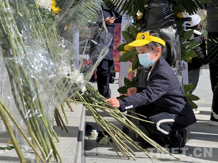 圖為社會各界人士向革命先烈敬獻(xiàn)鮮花 攝影:德吉卓瑪