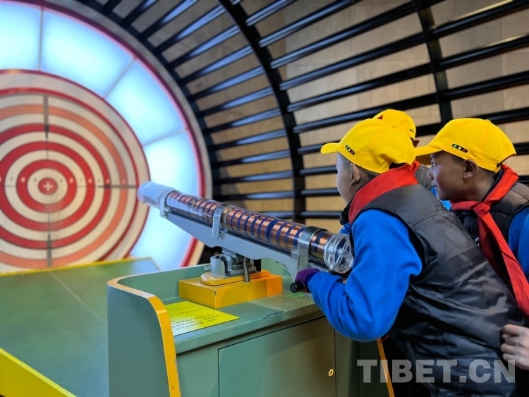 在講解員的帶領(lǐng)下學生們來到科技館,這里包括藏地智慧、科技樂園、科技前沿、體驗世界屋脊等4個主題展區(qū),主要展示古老的西藏科技智慧、人類取得的科技成就及基礎(chǔ)科學知識、科技促進人類的發(fā)展及西藏的開發(fā)建設(shè)、西藏高原生存環(huán)境的內(nèi)容。