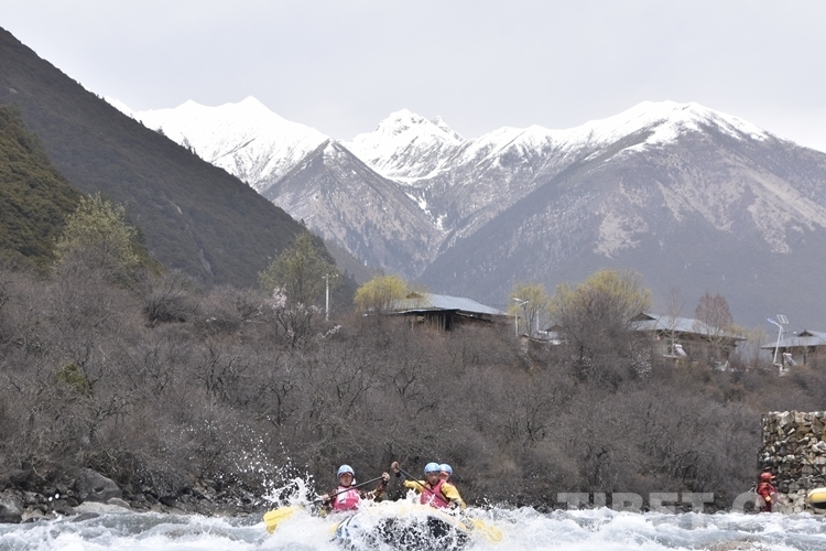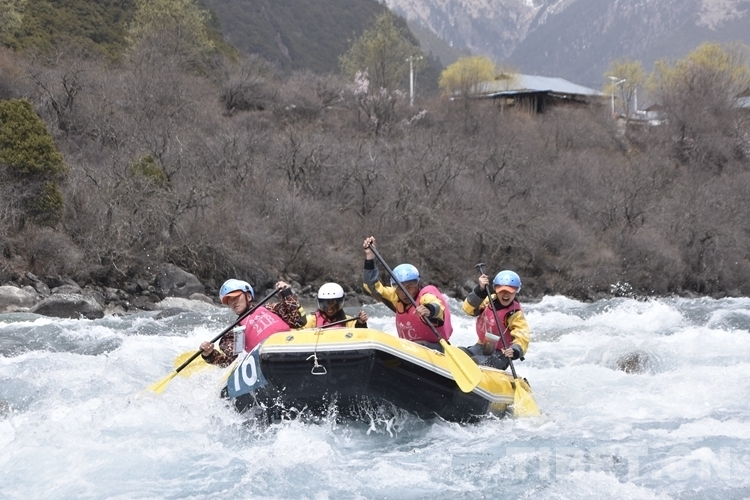 圖為4月16日,2.1公里激流漂流筏繞標賽比賽現(xiàn)場攝影:次旦拉姆