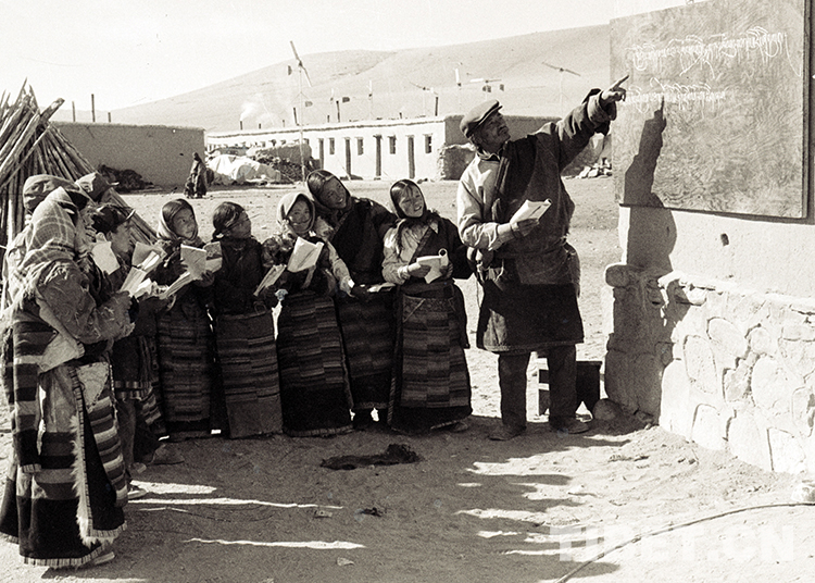 圖為雙湖辦事處(現(xiàn)那曲市雙湖縣)嘎措鄉(xiāng)小學(xué)教師巴多在給學(xué)生上課(唐召明1988年攝)