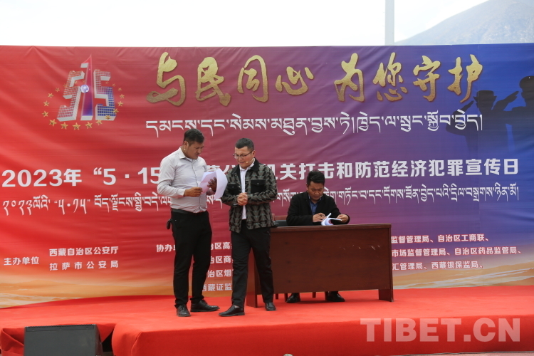 拉薩市是今年西藏“5?15”打擊和防范經濟犯罪宣傳活動的主展示地。記者在拉薩市集中宣傳活動現場看到,各參加單位、部門、企業(yè)采取發(fā)放宣傳資料物品、講解各類常見經濟犯罪類型、教授辨識假冒偽劣產品知識、傳授防騙打假經驗、為群眾答疑解惑等形式,集中宣傳了養(yǎng)老詐騙、合同詐騙、非法集資、傳銷以及如何識別假煙、假酒、假機油等。