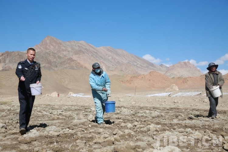 日前,西藏阿里邊境管理支隊日土邊境派出所民警走進(jìn)日土縣日土村,“增援”該所長期駐守在此的日土村警務(wù)室民警,與村民共同播種青稞。