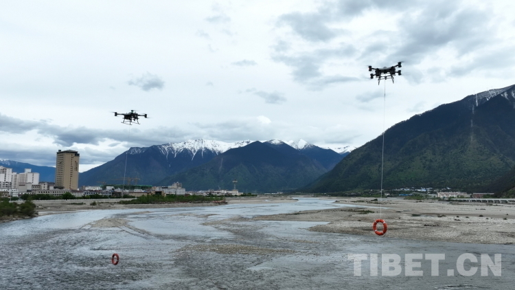 按照演習(xí)方案,此次演習(xí)包括應(yīng)急響應(yīng)、力量投送、地震救援處置行動(dòng)、落水車輛救援行動(dòng)、偏遠(yuǎn)山區(qū)救援行動(dòng)、森林火災(zāi)撲救行動(dòng)等內(nèi)容。圖為林芝市森林消防支隊(duì)無(wú)人機(jī)在“應(yīng)急使命·西藏2023”抗震救災(zāi)實(shí)戰(zhàn)化演習(xí)中從空中向救援目標(biāo)投送救生圈。