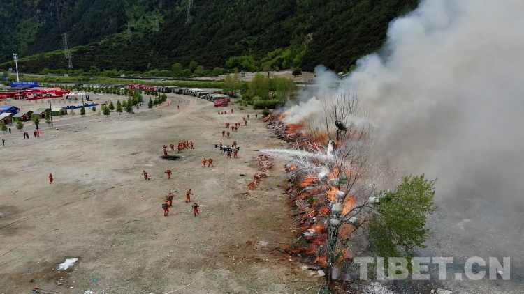 圖為林芝市森林消防支隊(duì)救援人員在“應(yīng)急使命·西藏2023”抗震救災(zāi)實(shí)戰(zhàn)化演習(xí)中撲打火線。