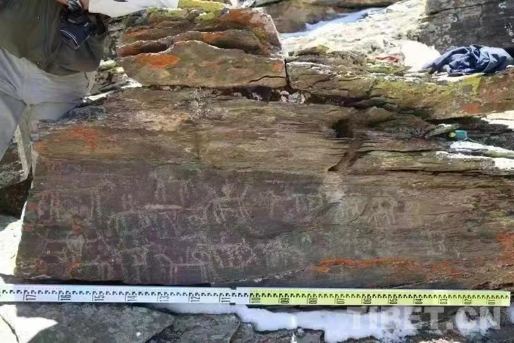 中國西藏網(wǎng)訊 5月26日,西藏自治區(qū)日喀則市江孜縣不可移動文物普查組在江孜縣境內(nèi)首次發(fā)現(xiàn)早期巖畫地點,該巖畫處在約海拔5200米的山麓上,分布在8處崖面上,巖畫圖像中出現(xiàn)46個騎馬人,其中22人持有弓箭,5人有持矛,還有4座早期佛塔和“萬字符”1個,表現(xiàn)出狩獵、爭斗和信仰等古代生活場景。