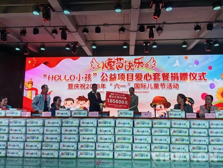 圖為“HELLO小孩”愛心套餐捐贈儀式現(xiàn)場