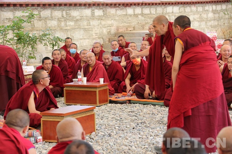 圖為中國藏語系高級佛學院2023年“拓然巴”高級學銜班招生考試(西藏)考點的辯經(jīng)考試現(xiàn)場 攝影:王佳豪