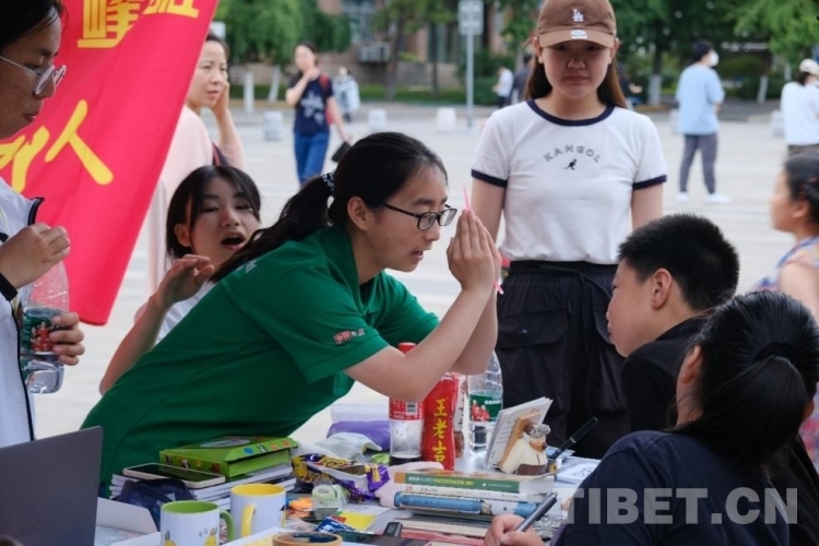 中國西藏網(wǎng)訊 “同學(xué),來看一下我們的雜志,義賣所得將用于為西藏自治區(qū)山南市扎囊縣吉汝鄉(xiāng)小朋友購買學(xué)習(xí)和生活用品?!薄巴瑢W(xué),請(qǐng)?jiān)诿餍牌?,寫下?duì)雪域高原孩子們的祝福與寄語吧。”“同學(xué),請(qǐng)隨意挑選,也能以物換物?!薄?月11日,在中國農(nóng)業(yè)大學(xué)奧運(yùn)場(chǎng)館西側(cè)跳蚤市場(chǎng),伴隨著中國農(nóng)業(yè)大學(xué)峰云社人文科考隊(duì)員熱情洋溢的介紹,“情系支教,愛滿山南”雜志義賣活動(dòng)開始了。