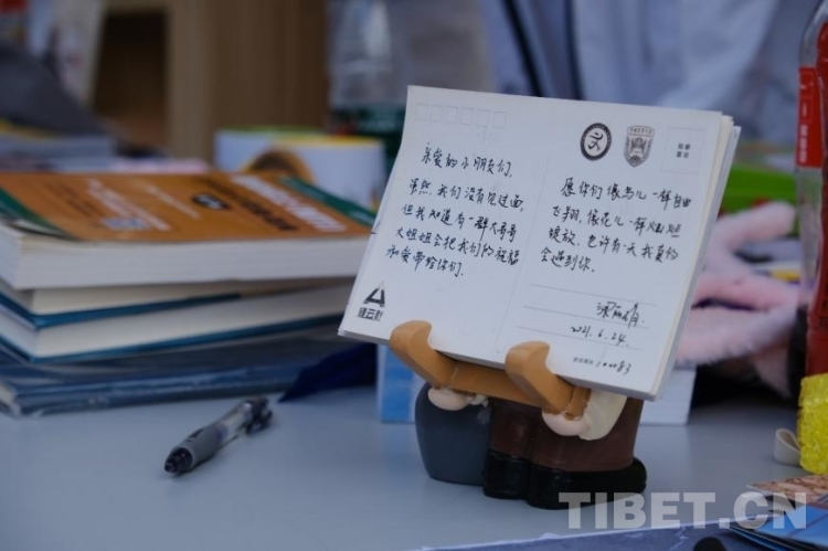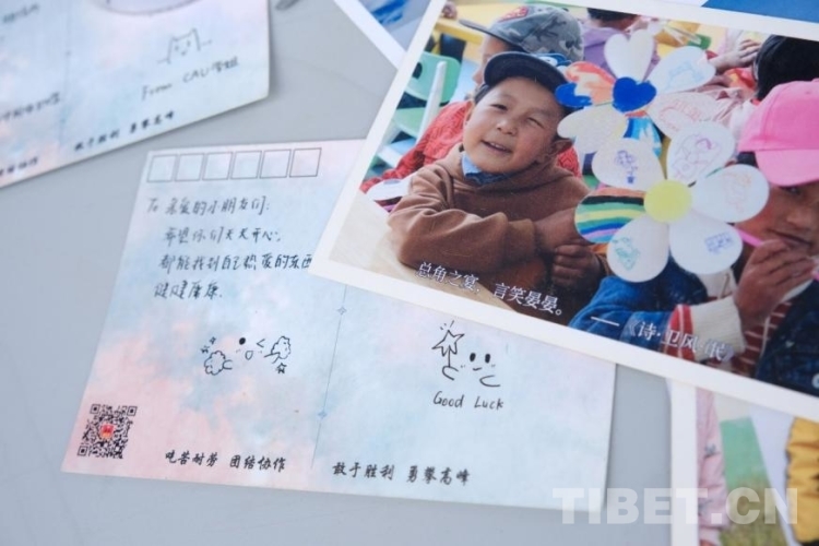 參與活動(dòng)的同學(xué)們?cè)诜逶粕缛宋目瓶缄?duì)準(zhǔn)備的明信片上寫下對(duì)當(dāng)?shù)匦∨笥衙篮玫淖8!R粡垙垖懼鴿M滿關(guān)切話語、畫著生動(dòng)可愛圖案的明信片上,飽含著中國農(nóng)業(yè)大學(xué)師生對(duì)雪域高原孩子們滿滿的愛意。
