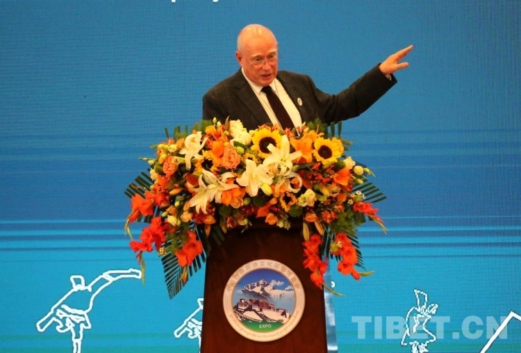 圖為大衛(wèi)·布萊爾在第五屆中國(guó)西藏旅游文化國(guó)際博覽會(huì)主旨論壇發(fā)表演講 攝影:王佳豪