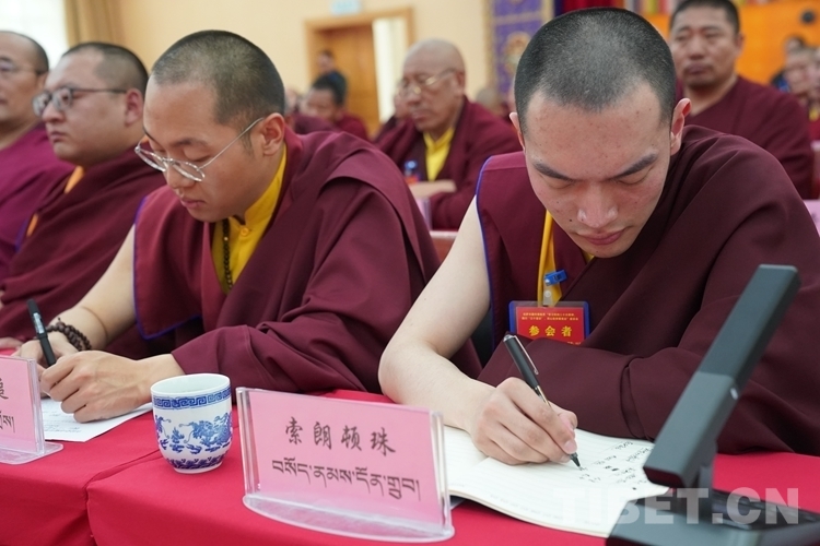 當(dāng)日座談會(huì)上,哲蚌寺管委會(huì)常務(wù)副主任阿旺群增說(shuō),2021年7月22日,習(xí)近平總書(shū)記親臨哲蚌寺視察并看望慰問(wèn)宗教界代表人士,這是哲蚌寺建寺600多年以來(lái),黨和國(guó)家最高領(lǐng)導(dǎo)人第一次到哲蚌寺視察工作,這是藏傳佛教最為重大的吉祥盛事,也是從未有過(guò)的無(wú)上榮光。阿旺群增說(shuō),為切實(shí)將總書(shū)記的重要講話(huà)重要指示內(nèi)化于心、外化于行,廣大僧眾應(yīng)進(jìn)一步提升思想政治認(rèn)識(shí),積極投身到“國(guó)家意識(shí)、公民意識(shí)、法治意識(shí)”教育和“遵行四條標(biāo)準(zhǔn)、爭(zhēng)做先進(jìn)僧尼”教育實(shí)踐活動(dòng)中,始終堅(jiān)持弘揚(yáng)藏傳佛教“出家不忘愛(ài)國(guó)、修身不忘濟(jì)世”的優(yōu)良傳統(tǒng)。