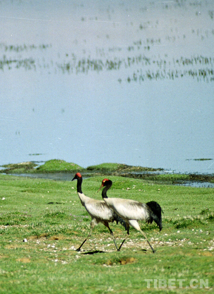 在藏北草原上漫步的國(guó)家一級(jí)保護(hù)動(dòng)物、被稱為”鳥類熊貓“的黑頸鶴(唐召明2001年攝)