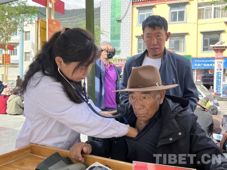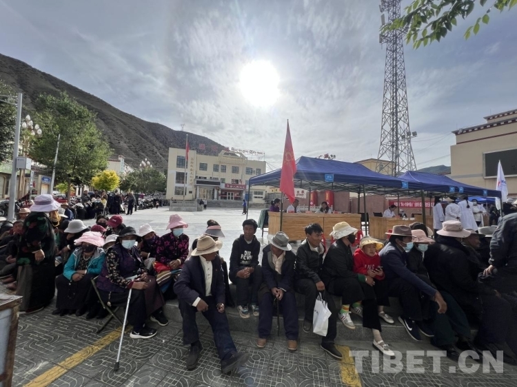 圖為孜托鎮(zhèn)群眾來(lái)到縣豐收廣場(chǎng)就醫(yī) 攝影:德吉卓瑪