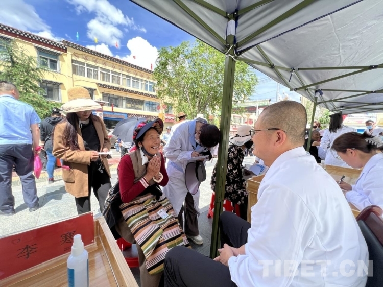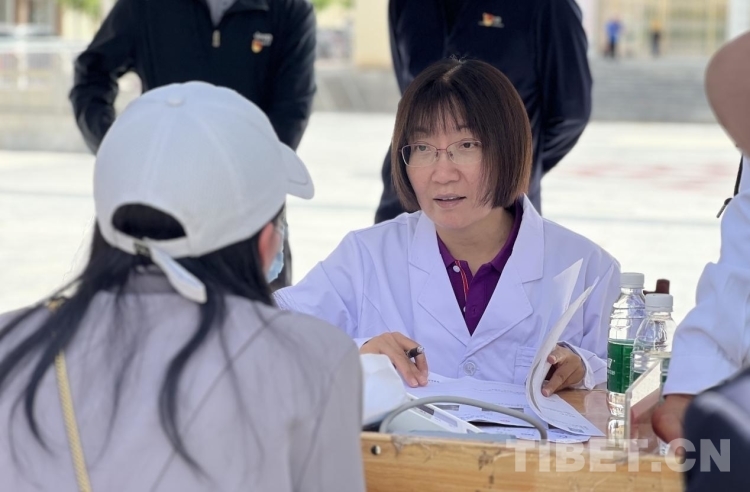 雖然大多數(shù)藏族群眾和醫(yī)生們存在溝通困難,但每位醫(yī)生旁邊專(zhuān)門(mén)有縣衛(wèi)生院工作人員進(jìn)行翻譯,絲毫不影響專(zhuān)家們向當(dāng)?shù)厝罕娫\斷看病和傳遞愛(ài)心。