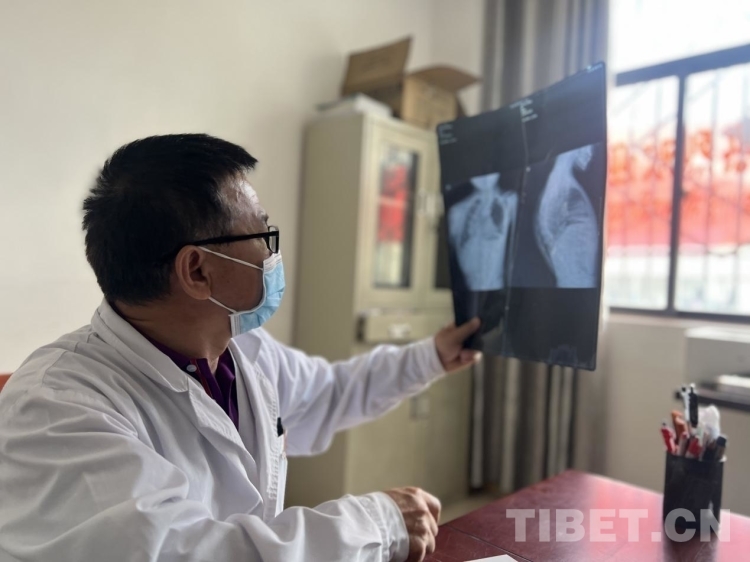 圖為北京海淀區(qū)清華大學(xué)校醫(yī)院的張新輝檢查桑丁之前做的CT片子攝影:德吉卓瑪