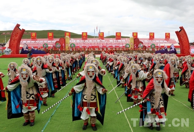 開幕式文藝演出分為《草原飛歌》《奮進(jìn)那曲》《幸福歌聲》《吉祥鍋莊》四個(gè)章節(jié)。格薩爾說唱和折嘎說唱等西藏傳統(tǒng)藝術(shù)瑰寶、“鄉(xiāng)村振興 那曲奮進(jìn)”活動(dòng)中涌現(xiàn)出的優(yōu)秀文藝作品、西藏自治區(qū)內(nèi)外著名歌手歌曲連唱、那曲各族人民共跳歡快鍋莊等悉數(shù)登場,帶動(dòng)開幕式現(xiàn)場氣氛到達(dá)高潮。
