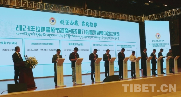 中國西藏網(wǎng)訊 8月17日,西藏自治區(qū)拉薩市2023年雪頓節(jié)招商引資推介會暨項(xiàng)目集中簽約儀式(以下簡稱:會議)在拉薩舉行。共達(dá)成簽約項(xiàng)目32個,總投資130.56億元。