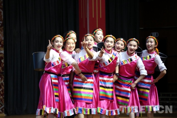 圖為拉薩那曲第二高級中學的學生們在文藝比賽中表演節(jié)目 攝影:王佳豪