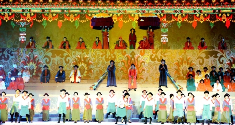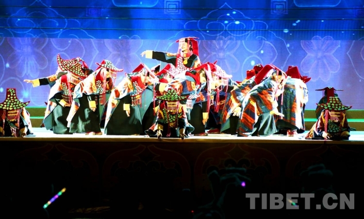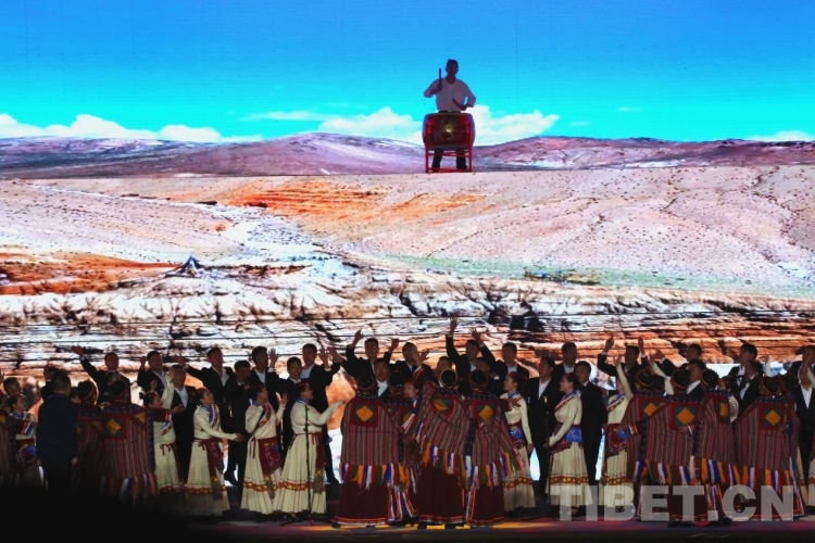 隨后盛大的開幕式文藝演出如期而至。演出共分為《悠遠古韻》《詩意微芒》《如炬經(jīng)典》《輝煌盛世》四個篇章?!队七h古韻》篇章為大型情景表演,結合古格壁畫為開場表演,展現(xiàn)出阿里人民群眾的精神面貌和獨特的阿里神韻?!对娨馕⒚ⅰ穮R集阿里地區(qū)諸多極具代表性的國家級非物質文化遺產(chǎn)節(jié)目,展現(xiàn)阿里地區(qū)悠久燦爛的古代文明遺存?!度缇娼?jīng)典》篇章通過不同舞蹈,展現(xiàn)阿里獨具特色的民間歌舞文化。《盛世弦歌》則展現(xiàn)了阿里地區(qū)以熱情昂揚的姿態(tài)在全力以赴推動建設雪域高原“西部明珠”中取得的一系列可喜的成績。