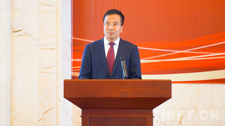 圖為西藏自治區(qū)黨委宣傳部副部長、西藏自治區(qū)社會科學院黨組書記孫向軍在第十六屆“中國講壇”現(xiàn)場致辭 攝影:趙振宇
