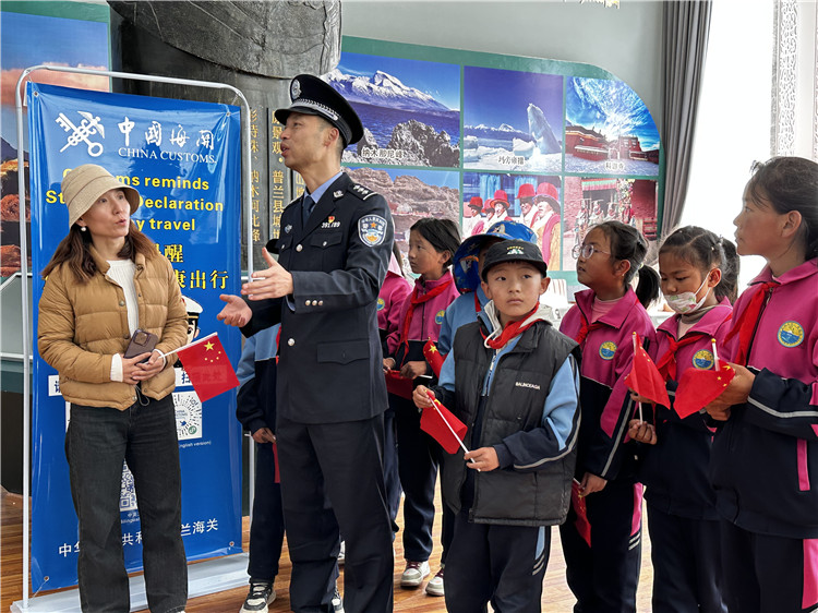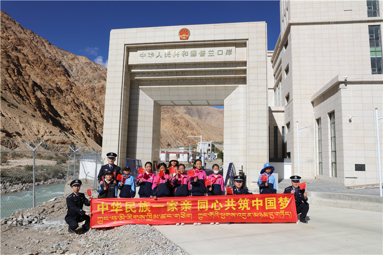 圖為參加活動的民警與學(xué)生在中尼(中國與尼泊爾)9號界樁,開展“傳承紅色基因 弘揚(yáng)烈士精神”主題宣傳教育活動