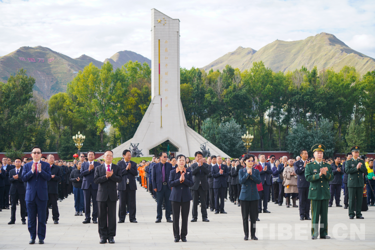 圖為10月1日西藏自治區(qū)慶祝中華人民共和國(guó)成立74周年“升國(guó)旗、唱國(guó)歌”儀式。 攝影:王淑