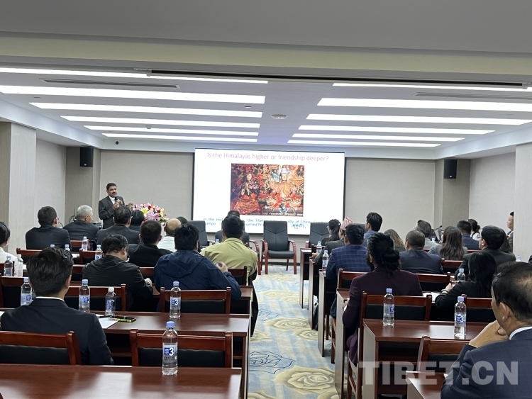 中國(guó)西藏網(wǎng)訊 由國(guó)家商務(wù)部培訓(xùn)中心主辦、西藏大學(xué)承辦、西藏善緣基金會(huì)協(xié)辦的“中國(guó)—尼泊爾跨境經(jīng)濟(jì)合作智庫(kù)和專家研修班”于9月30日—10月7日在拉薩舉行,并于10月7日在西藏賓館舉行“跨越喜馬拉雅,共話民間友好——杜鵑花盛開(kāi)的國(guó)度”專題研討和聯(lián)誼活動(dòng)。研修班全體學(xué)員及西藏大學(xué)、西藏善緣基金會(huì)、尼泊爾中國(guó)凱拉斯文化促進(jìn)會(huì)部分來(lái)賓參加研討會(huì)和聯(lián)誼活動(dòng)。
