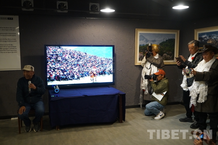 圖為西藏攝影家協(xié)會副主席扎西次仁正在介紹自己的作品 攝影:趙振宇