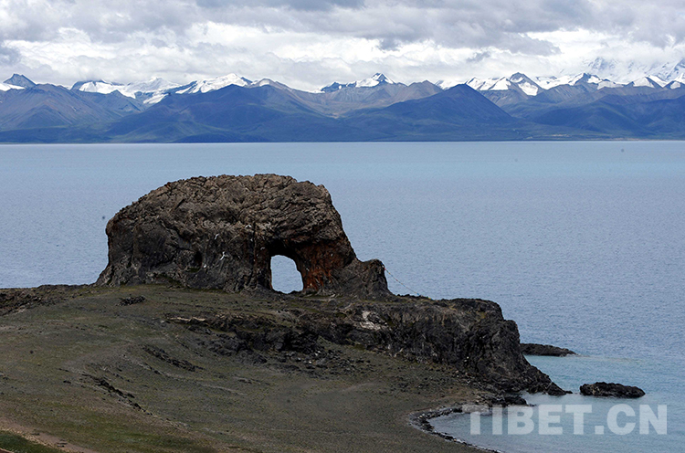 位于班戈縣納木錯(cuò)北岸的“圣象天門(mén)”景觀。遠(yuǎn)處是綿延的念青唐古拉山脈(唐召明2012年8月4日攝)