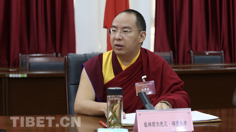 圖為援助西藏發(fā)展基金會第五屆理事會理事長班禪額爾德尼·確吉杰布講話 攝影:旺啦