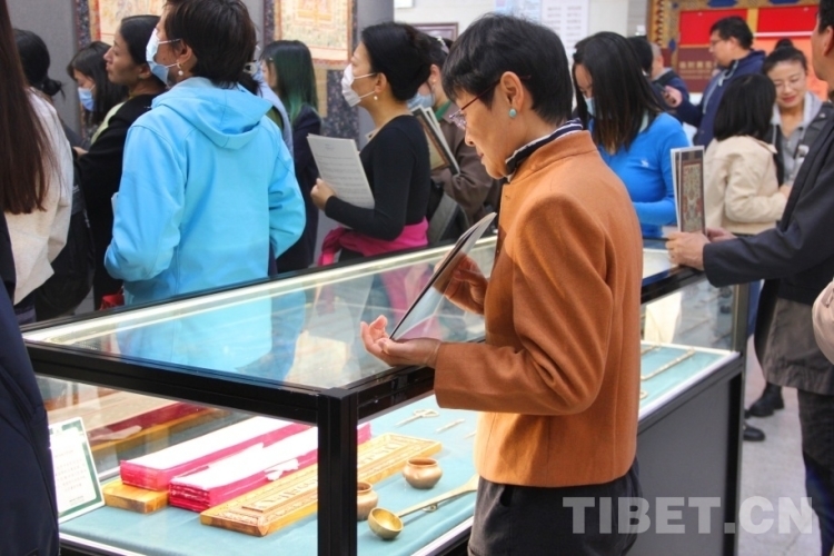 圖為參展觀眾觀看櫥窗藏醫(yī)藥相關(guān)展品 攝影:王茜