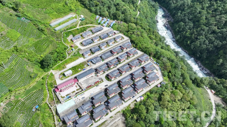 圖為搬遷后的墨脫縣背崩鄉(xiāng)巴登村全貌(航拍圖),整個村莊位于雅魯藏布江大峽谷西側的山坡上,村莊的西側是茶園。圖片由墨脫縣融媒體中心提供