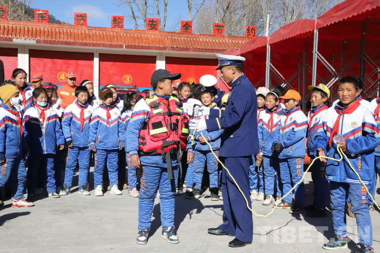 圖為昌都市森林消防支隊左貢縣中隊聯(lián)合該縣第二小學,開展“消防安全進校園”活動,使學生們在寓教于樂中掌握日常消防安全知識