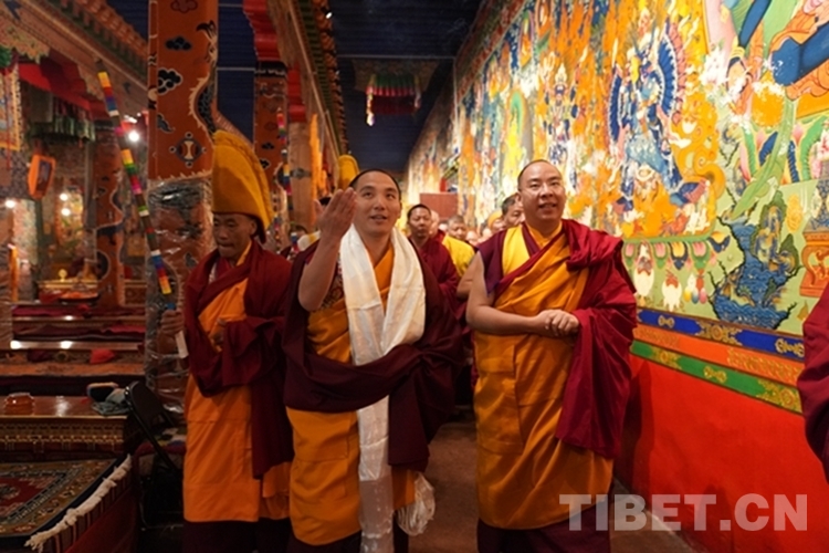 在瓊布·阿旺強巴堅贊活佛引領下,班禪依次朝拜主殿懺悔殿、主供佛殿、度母殿、護法神殿、舊杜康殿,參觀文物陳列室,前往寺廟辯經(jīng)場觀摩僧人辯經(jīng),并就扎西吉培寺“三個意識”教育開展情況和僧人綜合考評機制有關情況進行調(diào)研。