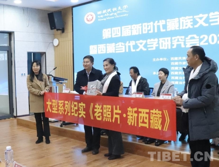 西藏民族大學校友、作家陳琳女士向西藏民族大學文學院贈送了她主編的6卷本大型系列紀實影像集《老照片·新西藏》。她表示,作為西藏文學的一名創(chuàng)作者,首先要思考為誰去寫、寫什么的問題,作家應(yīng)該堅持為人民而寫作的立場,堅持從民間和現(xiàn)實生活中汲取力量。