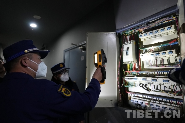 圖為消防監(jiān)督員正在對(duì)配電柜進(jìn)行溫度測(cè)量