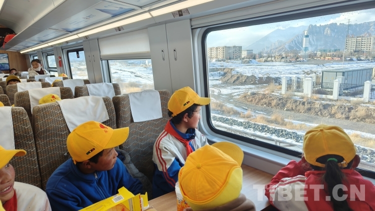 圖為多白鄉(xiāng)小學(xué)生乘坐高原動車組列車前往拉薩