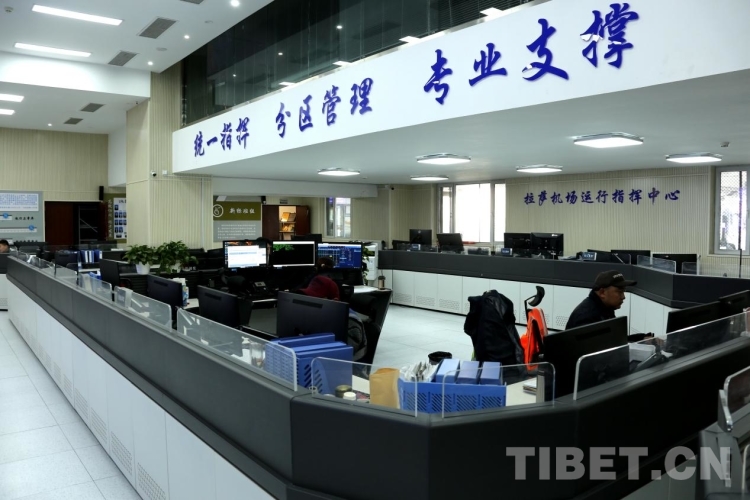 圖為春運首日,拉薩機場運行指揮中心內(nèi)工作人員有序指揮各項工作 攝影:王佳豪