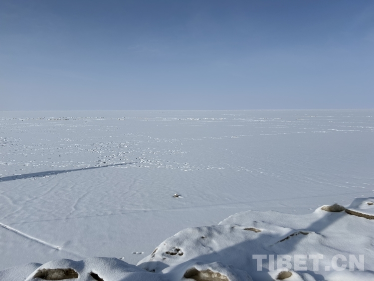 青海湖是我國(guó)面積最大的內(nèi)陸湖泊,湖岸線長(zhǎng)約360公里。落雪后的湖面更是白茫茫一片,極目遠(yuǎn)眺,水與天相接。天地間十分安靜,只余不太溫柔的風(fēng)聲在耳側(cè)呼嘯而過。偶爾有游人在冰面走動(dòng),在白色的背景下顯得格外醒目。我們的無人機(jī)好像一只勇敢的沙鷗,翱翔在水天之間。(中國(guó)西藏網(wǎng) 文/李一凡 龍真多吉 張萌萌)