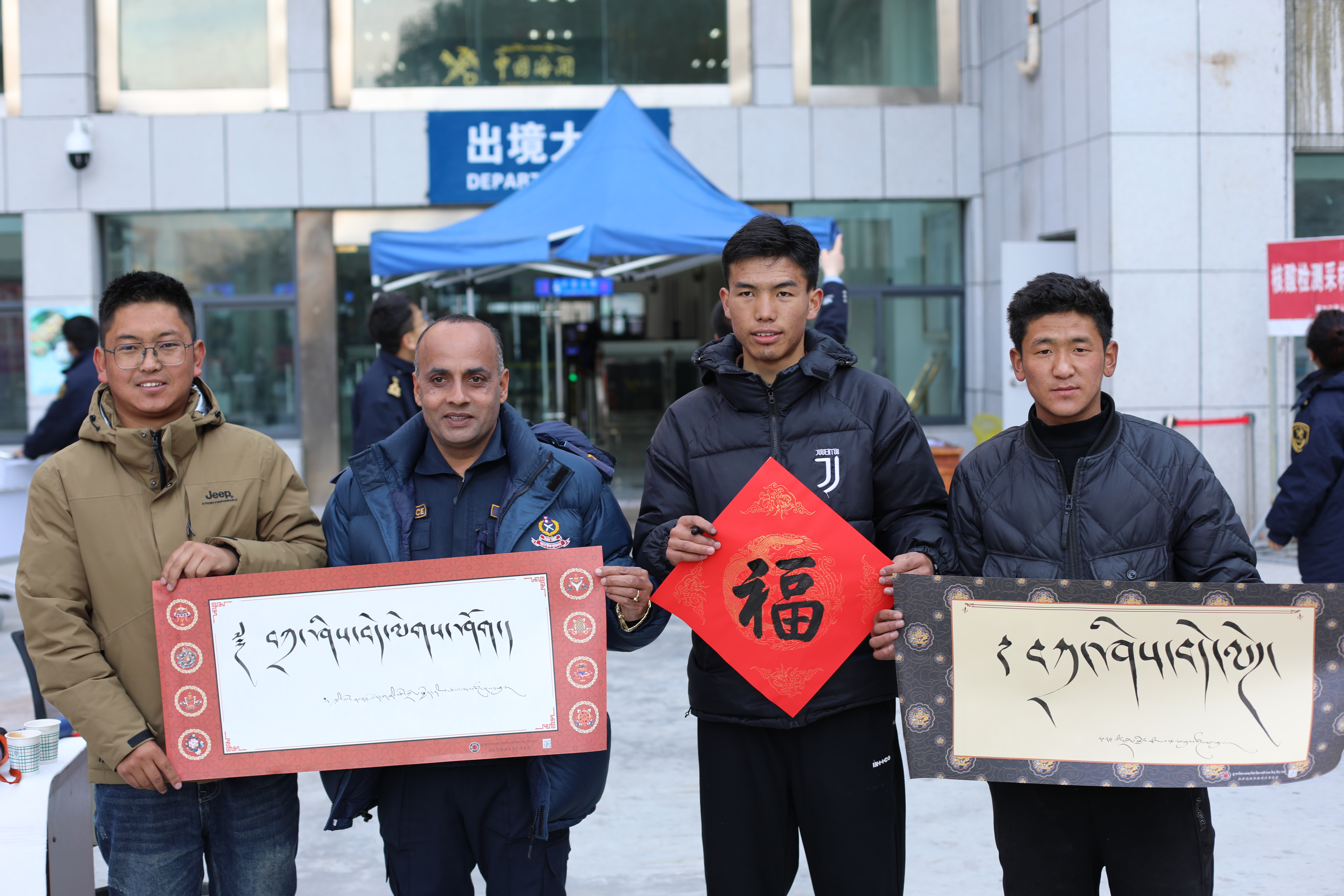 據(jù)了解,此次活動,文藝志愿者們走進海拔4500米以上的高海拔鄉(xiāng)鎮(zhèn)、深入邊境一線口岸村莊、行走里程達4000余公里,為偏遠的群眾、邊境一線干部職工、海關、邊檢站、口岸國門、游客以及市直機關單位等共贈送了書法作品和全家福4000余幅,《珠穆朗瑪》等精品圖書500余冊,學生文具200余套。通過送文藝演出、書法作品、圖書、拍全家福為主體的“三送一拍”活動,為大家?guī)砹艘粓鲐S富多彩的文化盛宴,送來了春節(jié)和藏歷新年的美好祝福。