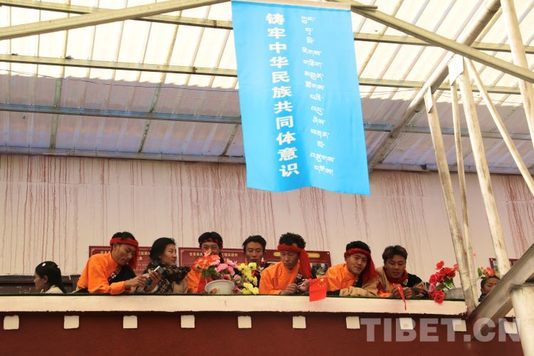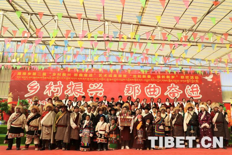 中國西藏網(wǎng)訊 2月10日,中國西藏信息中心“新春走基層”青藏線采訪組一行,來到西藏自治區(qū)那曲市安多縣灘堆鄉(xiāng),適逢當(dāng)?shù)卦谂e辦灘堆鄉(xiāng)第二屆“鄉(xiāng)村振興 那曲奮進”藝術(shù)成果展暨“龍和新春、福祈新歲”聯(lián)歡活動。采訪組一行來到鄉(xiāng)政府對面的灘堆鄉(xiāng)文化站,記者在現(xiàn)場看到許多穿著具有當(dāng)?shù)孛褡逄厣椀娜嗽诖司奂T诤闷嫘牡尿?qū)使下,經(jīng)詢問當(dāng)?shù)馗刹坎胖?,為喜?024春節(jié)和藏歷新年,感激黨和國家的關(guān)心關(guān)懷,歌頌如今來之不易的幸福生活,鄉(xiāng)村文藝隊特此精心準(zhǔn)備了文藝節(jié)目,以嶄新的面貌和昂揚的精神展現(xiàn)新時代牧民群眾的精神風(fēng)貌和幸福生活。