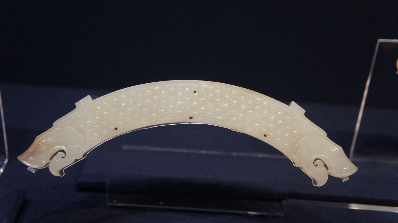 圖為玉文化催生龍文化的實物見證:戰(zhàn)國雙龍首形玉璜,玉璜代表天地溝通之彩虹橋