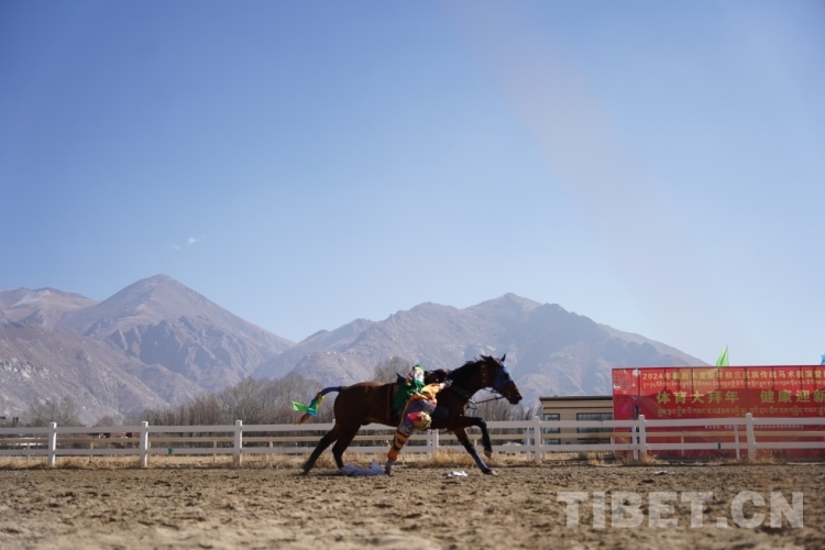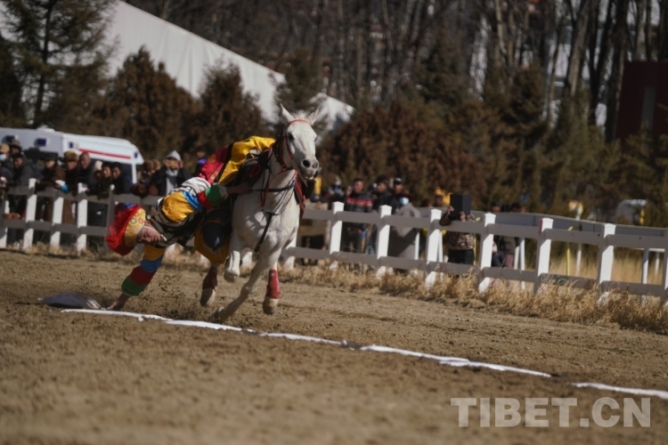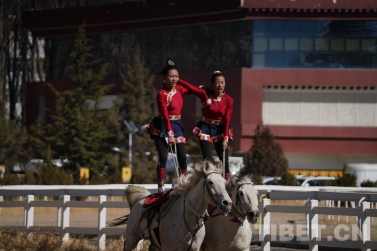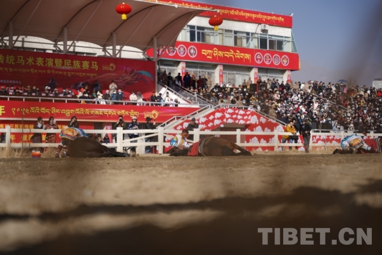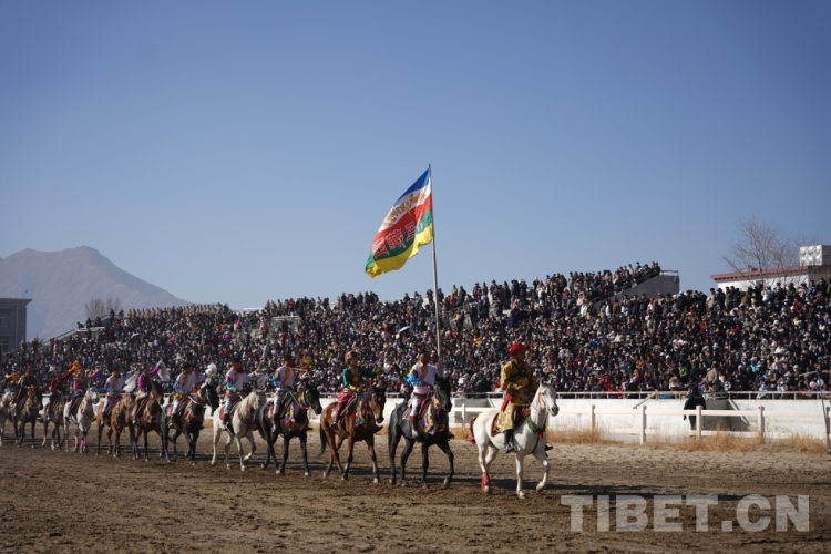 中國(guó)西藏網(wǎng)訊 2月12日上午,藏歷木龍新年初三民族傳統(tǒng)馬術(shù)表演暨民族賽馬活動(dòng)在拉薩賽馬場(chǎng)舉行。此次活動(dòng)包括民族賽馬和馬術(shù)表演。其中,民族賽馬包括3000米、5000米、8000米三個(gè)項(xiàng)目,馬術(shù)表演共有18個(gè)大項(xiàng)、20余個(gè)小項(xiàng)。馬術(shù)表演與民族賽馬穿插進(jìn)行。現(xiàn)場(chǎng)約8000名觀眾共同欣賞了精彩的馬術(shù)表演,觀看了激烈的速度賽馬,共慶佳節(jié)。