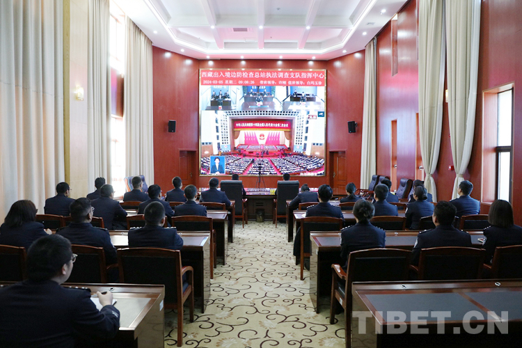 中國西藏網(wǎng)訊 3月5日上午,十四屆全國人大二次會議在北京開幕。西藏邊檢總站執(zhí)法調(diào)查支隊組織各級民警集中收看了開幕會實況,重點收看并學習了李強總理在開幕會上所作的《政府工作報告》。