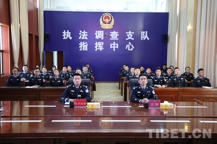 圖為西藏邊檢總站執(zhí)法調(diào)查支隊組織各級民警集中收看開幕會